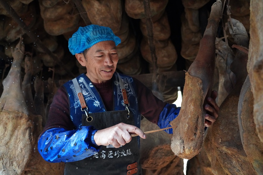 从1999年初次尝试,到今年腌制火腿超万只,杨李忠紧跟市场潮流,打通线上线下销售多元渠道,让老窝火腿走出深山。凭借低盐入味、肉质柔软、香气醇厚的独特风味,老窝火腿赢得消费者青睐。
