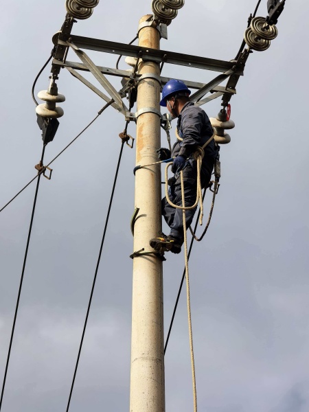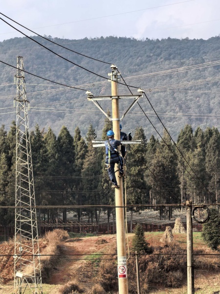 麒麟供电局东山供电所电力施工作业现场(1月10日摄)。