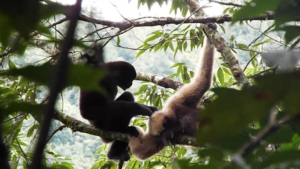 在林冠间,团队人员见证了长臂猿家庭轻盈腾跃、采食野果、相互梳毛的温馨日常,也记录下幼猿在父母守护下逐渐成长、学习生存技能的点滴瞬间。