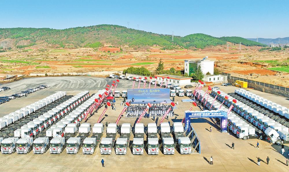 1月16日,我国西南地区首条“氢走廊”在富源县贯通,氢通富源风光制加氢及运力平台一体化项目的首批300辆氢能重卡同步投入运营。