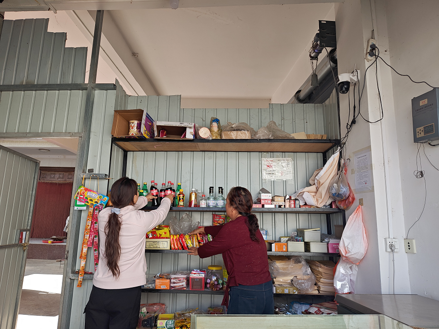 客户经理帮助困难客户整理货架(1月15日摄)。周颖 摄