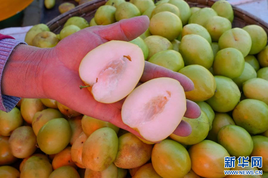 剥开的青枣(1月20日摄)。新华网发(李易晨 摄)