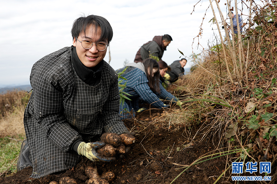 当地农户采挖天麻(2025年11月20日摄)。新华网发(徐华陵 摄)