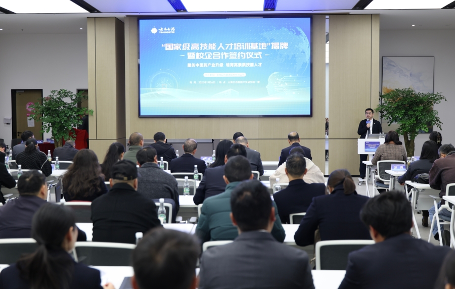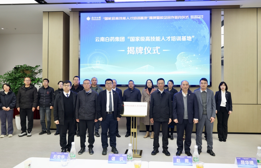 1月26日,云南白药集团股份有限公司(以下简称“云南白药集团”)“国家级高技能人才培训基地”揭牌暨校企合作签约仪式在云南白药集团中央研究院举行。