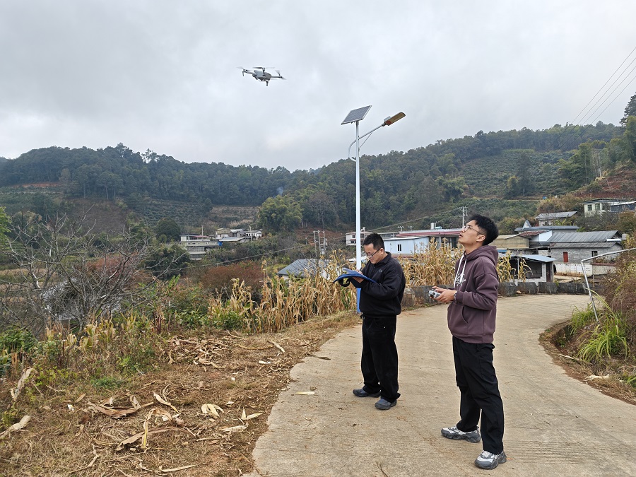 烟站员工开展面积核实航测工作(1月12日摄)。李富华 摄
