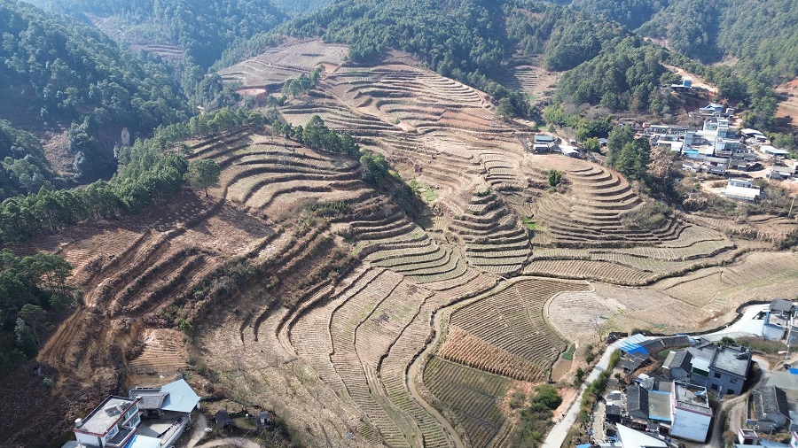 忙糯烟区航拍实况图(1月15日摄)。阳昊锟 摄