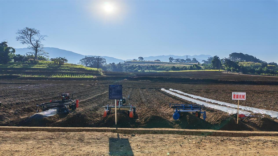 自走式覆膜机演示现场(1月13日摄)。王天华 摄