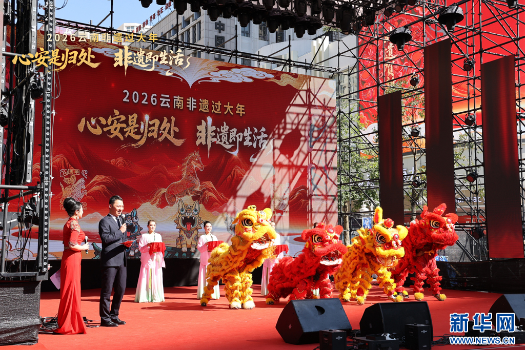“心安是归处 非遗即生活”——2026云南非遗过大年活动于1月30日在昆明市五华区南屏街西口启幕,“桃花流水——非遗展演大观园” “兰泽芳晴——非遗康养大观园” “市井百工——淘宝中国宝贝·非遗年货大观园”“心安驿居——乡愁旅居大观园”四大“大观园”同步亮相。(完)