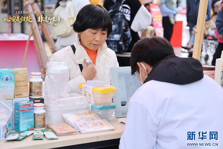 1月31日,云南省昆明市五华区南屏街西口广场人头攒动,“心安是归处 非遗即生活”——2026云南非遗过大年活动正如火如荼开展。作为活动四大“大观园”之一,“兰泽芳晴——非遗康养大观园”内呈现的各类传统医药项目和大健康产品,吸引了众多市民游客挑选体验。(完)
