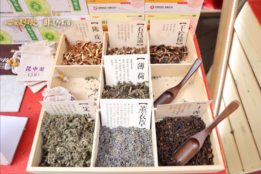新春佳节即将到来之际,一场融合非遗智慧与康养之道的文化盛宴在昆明市南屏街精彩呈现。在“2026云南非遗过大年”活动中,云南省中医医院(云南中医药大学第一附属医院)与云南白药集团股份有限公司(以下简称“云南白药集团”)、云南省民族民间医药学会携手打造了“兰泽芳晴—非遗康养大观园”,以传统医药非遗为核心,构建起传统与现代交融的健康体验空间。
