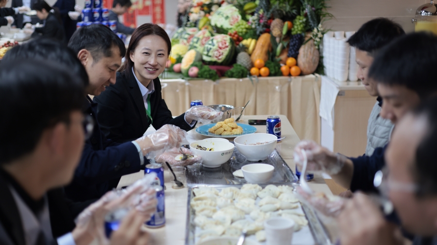“国寿美食节 饺香暖人心”活动现场,员工们在师傅指导下亲手包制元宝形、月牙形饺子,享受劳动乐趣与团圆温馨。