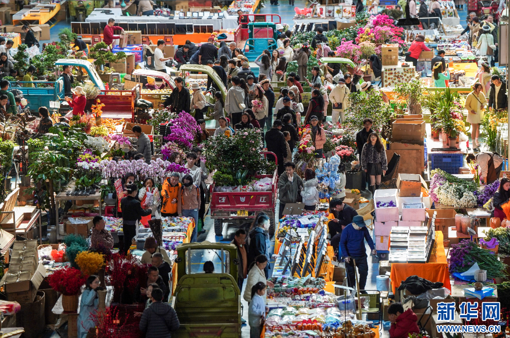 2月10日,游客在斗南花卉市场内选购鲜花。新华社记者 彭奕凯 摄