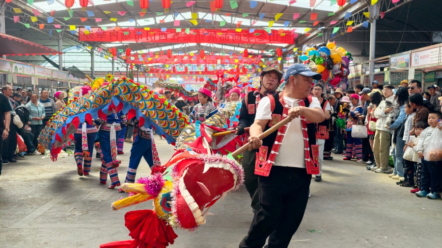 “开新街”指春节过后的第一个街子天,由于民众忙于走亲访友、商户尚未完全营业,为了让市场重新热闹起来、繁荣集镇经济,当地便以耍龙灯、舞狮、花鼓舞等丰富多彩的民俗活动“闹街开市”,以此祈愿新的一年商贸兴旺、生活红火。这一传统已成为峨山独具特色的文化符号。