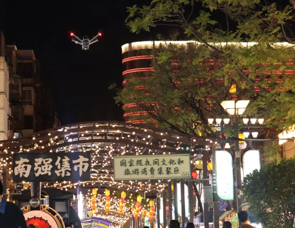 针对昆明老街巷道狭窄、视线盲区多的特点,护国派出所启用警用无人机开展空中巡防,实时回传客流数据,精准疏导人流,弥补地面巡逻盲区,实现地面空中立体化防控。
