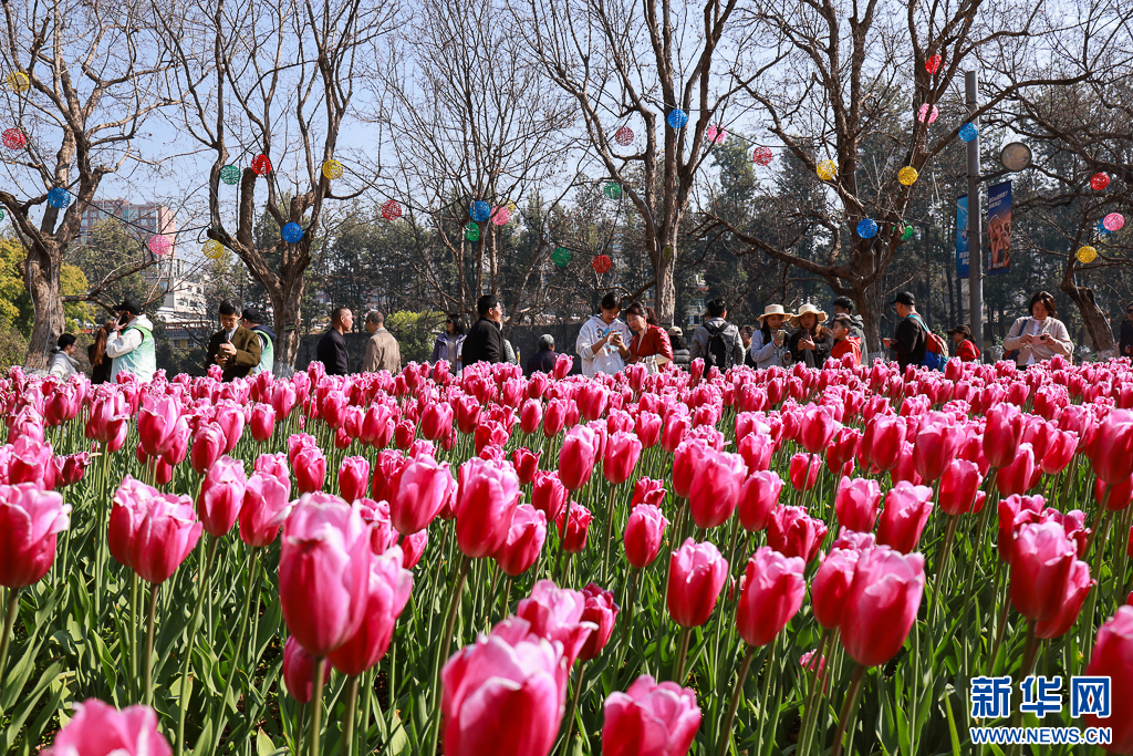 昆明翠湖公园盛开的郁金香(2月17日摄)。新华网发(郑益 摄)
