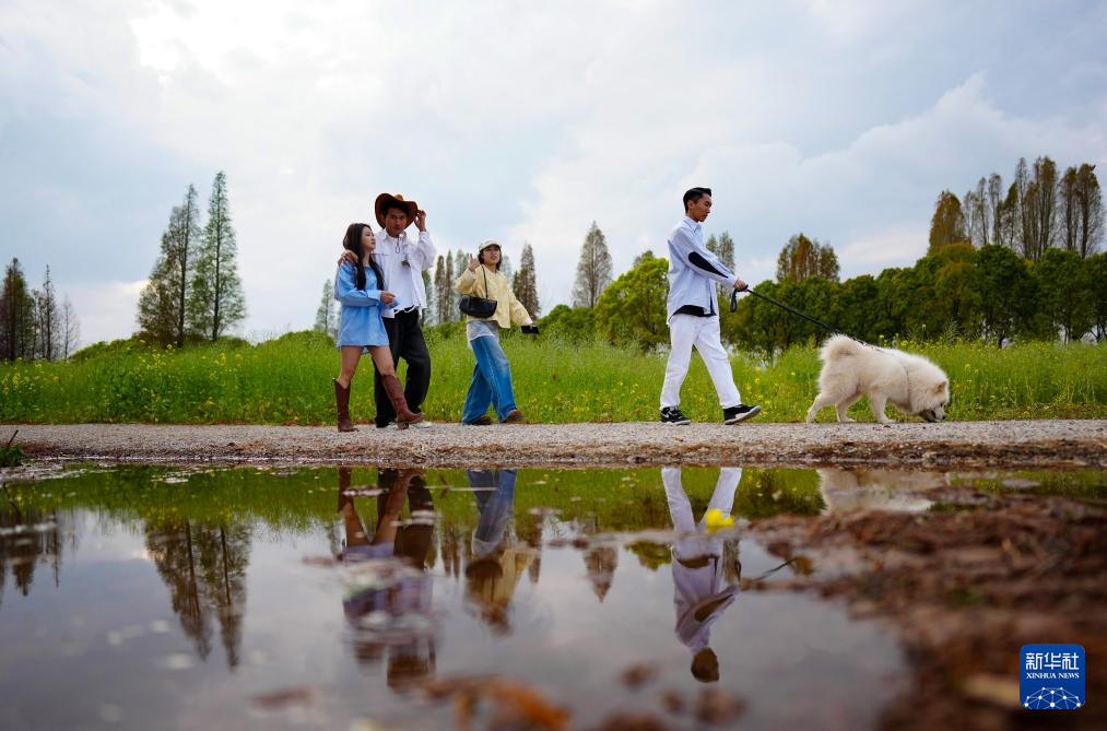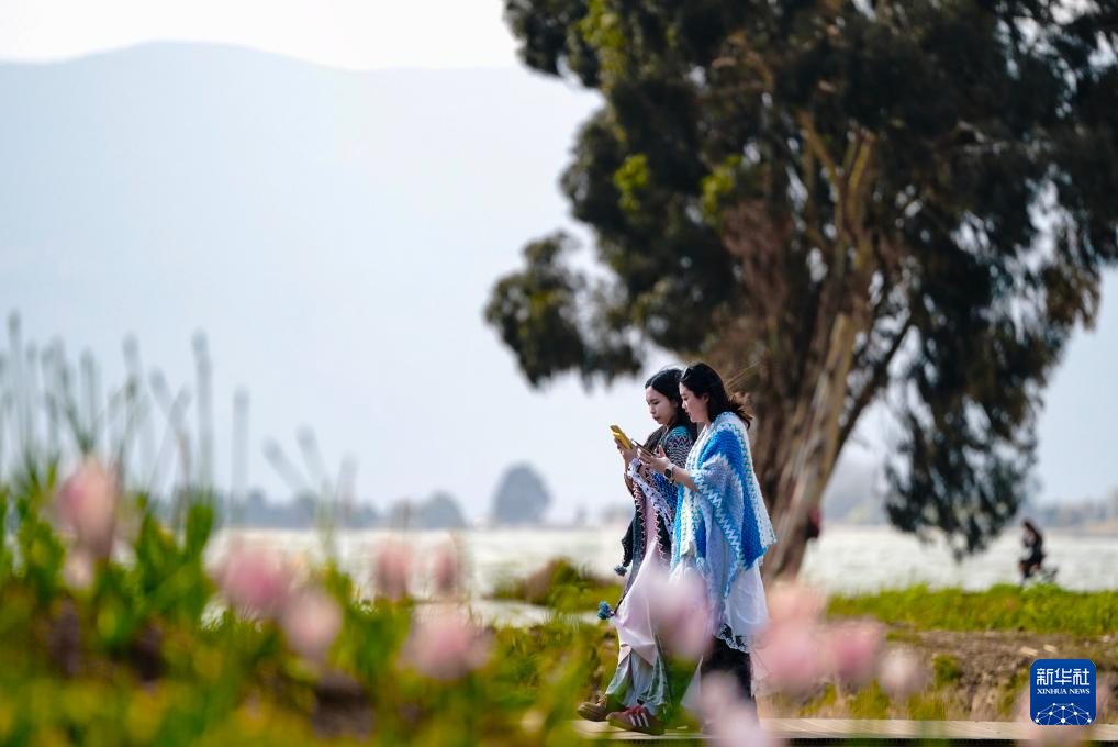 2月26日,游客在滇池边漫步。新华社记者 陈欣波 摄