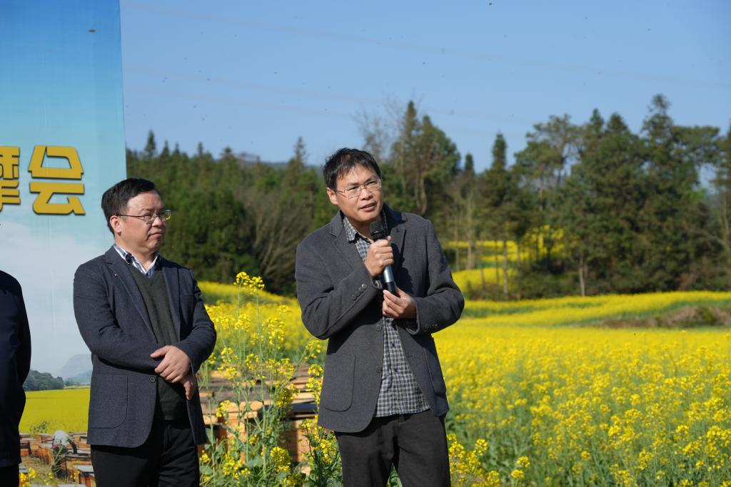 学术研讨环节,5位专家围绕我国油菜品种种植与分布特征、花期病虫害绿色防控、农药对蜜蜂安全与授粉服务的影响、蜜蜂授粉对油菜单产与品质提升的经济贡献等做专题报告。与会代表就油菜大面积生产条件下如何优化蜂群配置、规范田间管理、强化农药减量与安全用药、推进“蜜蜂授粉+绿色防控”技术集成与产业协同进行了深入交流,形成多项可操作的推广建议。