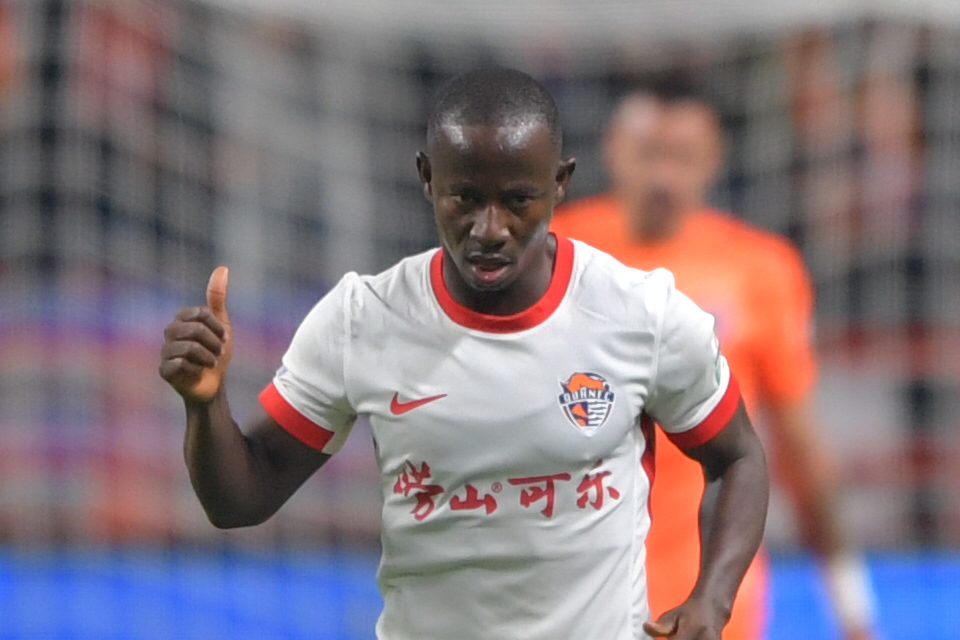 3月7日,青岛海牛队球员叶博亚在比赛中庆祝进球。新华社记者 陈欣波 摄