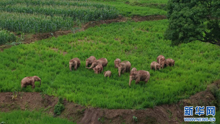 雄象跟随象群活动(2025年6月5日摄)。新华网发(周晨浩 摄)