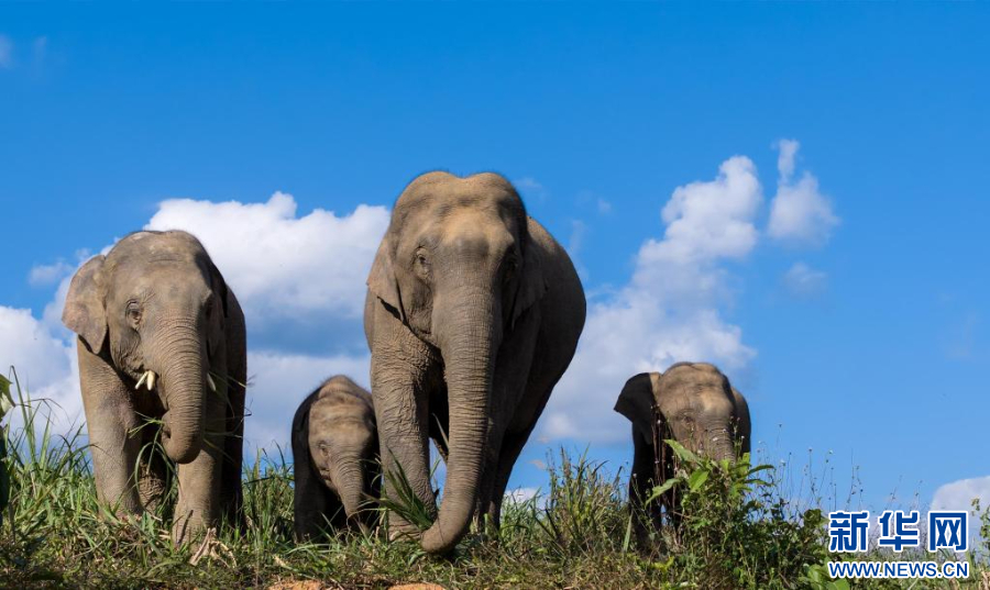 野象家族带着小象宝宝活动(资料图)。新华网发(周晨浩 摄)