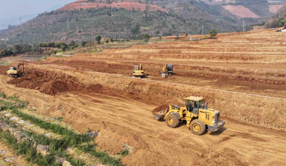 春耕备耕时节,施甸县旧城乡大田坝村高标准农田建设现场一派繁忙景象,推土机、挖掘机来回穿梭,山谷间农田改造如火如荼。曾经被村民称作“裤带田”“巴掌田”的零散地块,将改造为平整连片、渠路配套、高产稳产的现代化良田,为粮食安全与乡村振兴筑牢根基。