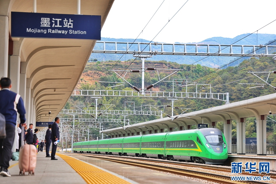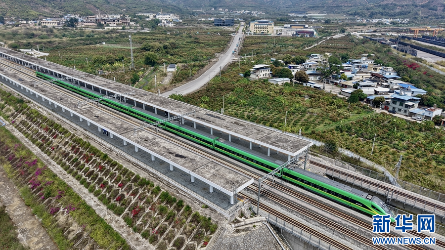 列车停靠在中老铁路墨江站(资料图)。新华网发(纳建博 摄)