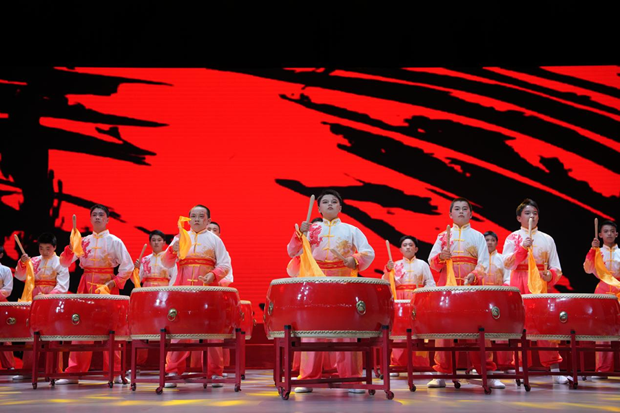 云师大附小金安校区开场大鼓铿锵有力,展现学子风采(4月3日摄)。云师大附小金安校区 供图