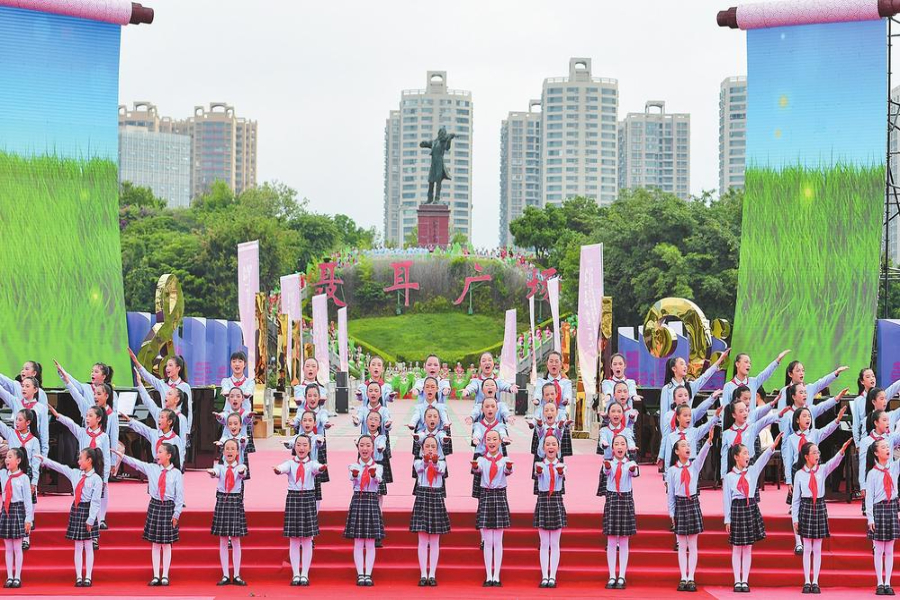 聂耳音乐周里,举办同升国旗同唱国歌活动。通讯员 曾永洪 摄