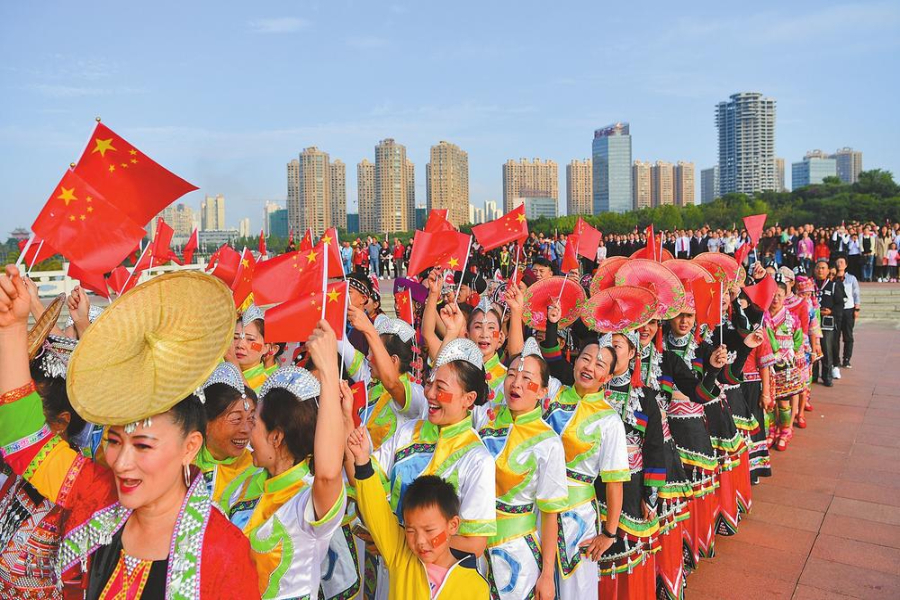 各民族群众参加升旗仪式。通讯员 曾永洪 摄
