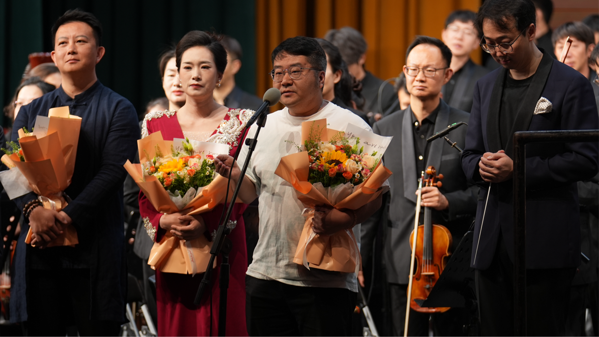 舞台上,胡星宇的指挥下层次分明、沉稳有力,加上龚正独特的民族吹管乐演奏、女高音毕晓凤的娓娓吟唱与昆明城市学院“博雅之声”合唱团的和声交织共鸣,搭配经典素描、水墨质感历史影像,让珍贵史料与音乐精准同频,沉浸式再现联大先辈在动荡中守护知识、心怀家国的峥嵘岁月。