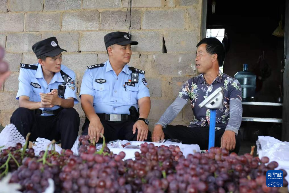 余红李(中)生前在办案过程中走访辖区群众。新华社发