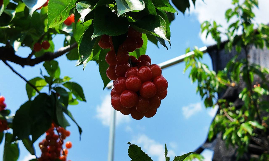据了解,鲁甸县樱桃种植总面积达1.8万亩,其中核心产区小寨镇种植面积达1.4万亩,产量约5000吨,年产值达6000万元,是当地推动农文旅融合、赋能乡村振兴的特色产业。近年来,小寨镇先后引进“玛瑙红”、巧克力樱桃、牛奶樱桃等优质新品种,通过早中晚熟品种搭配种植,有效延长了鲜果采摘周期。2026年采摘期将从4月中旬持续至5月上旬,广大游客可错峰出行,沉浸式体验田园采摘乐趣。