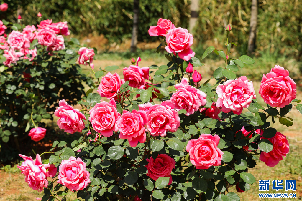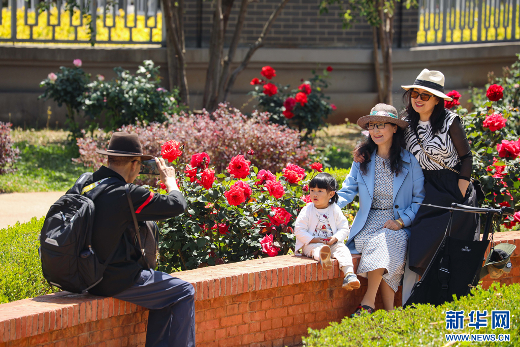 近日,昆明大观公园内的月季迎来了绚烂的花期。各色月季竞相绽放,花香随风弥漫,引得蜂蝶翩翩起舞。