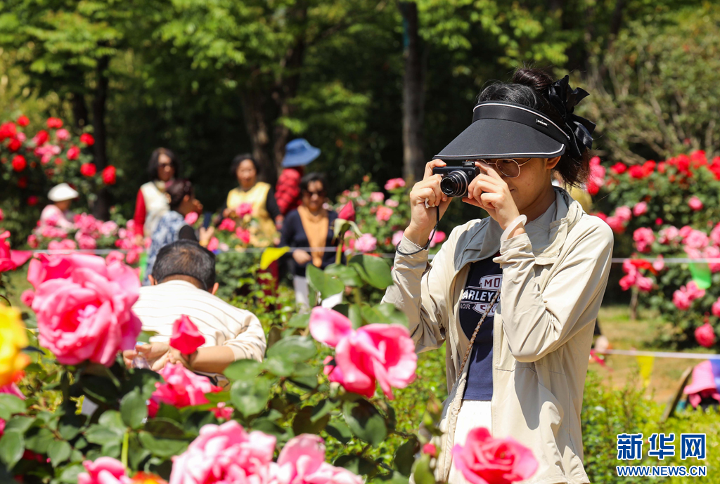 绽放的月季(4月12日摄)。新华网发(郑益 摄)