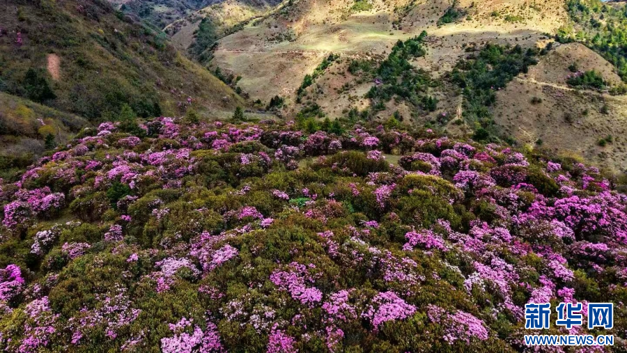 漫山遍野杜鹃花开(视频截图)。新华网发(剑川县委宣传部供图)