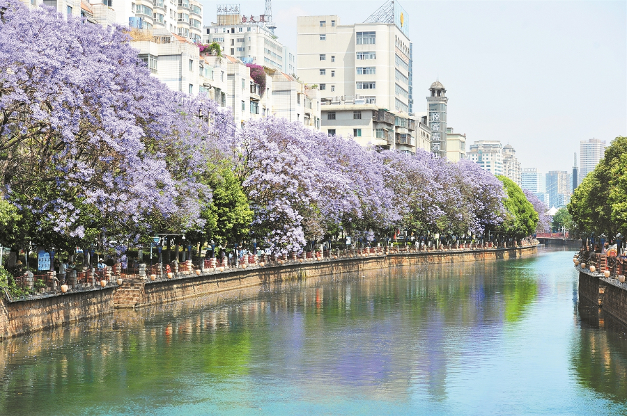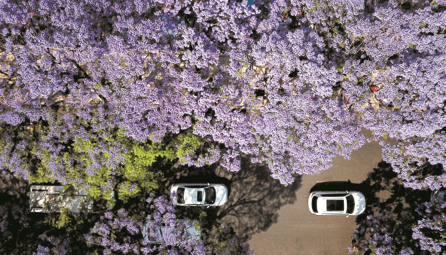 昆明:蓝花楹绽放迎客 文旅花招频出