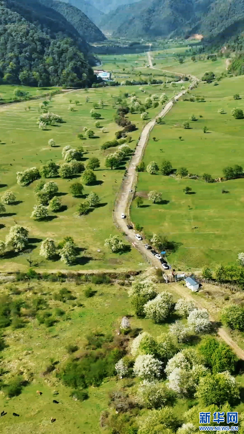 近日,云南省保山市腾冲市明光镇大竹坝棠梨花进入盛花期,洁白花瓣缀满枝头,微风拂过,花瓣轻落草甸。大竹坝三面环山,风光秀美,溪水潺潺,棠梨花下,牛羊悠然漫步,构成一幅美丽的田园画卷。(腾冲市融媒体中心 刘正凡 陈娟 董正东 李谚)