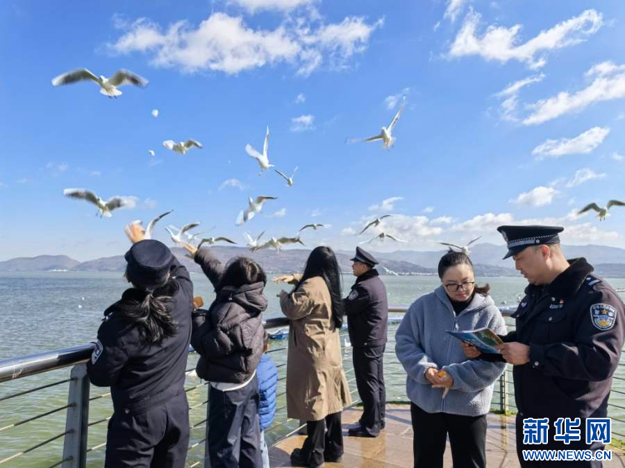 民警在星云湖边开展保护生态法制宣传(资料图)。新华网发(玉溪市公安局供图)