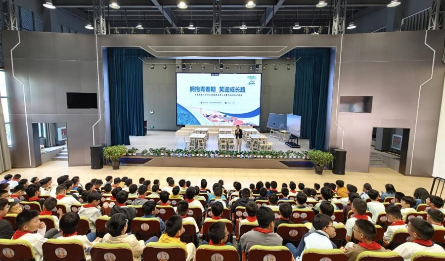 专家为学生开展健康知识讲座(4月10日摄)。