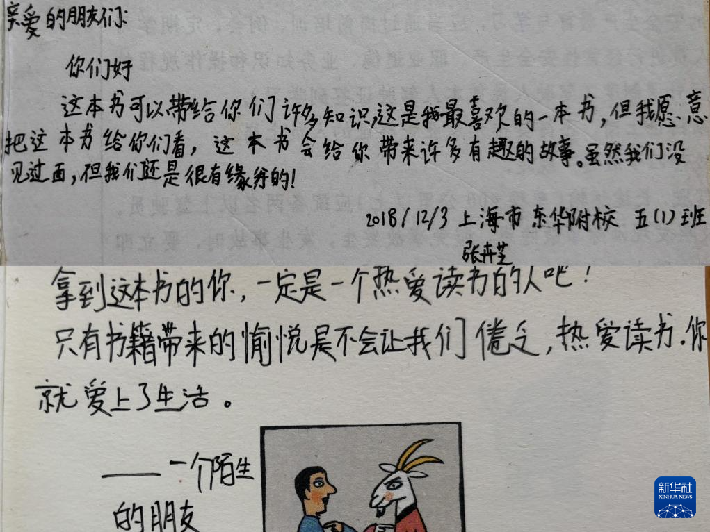 新华社昆明4月24日电(何春好、彭奕凯、陆志秋)“亲爱的同学,你好。我是一位来自上海九年级的大姐姐。这本书陪伴了我很久,也是我最喜欢的书之一,希望你也喜欢它。”