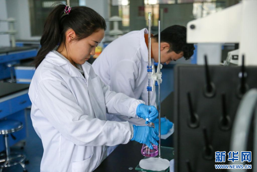 学生在学校实验室做水质检测(2025年3月17日摄)。新华网发(徐华陵 摄)