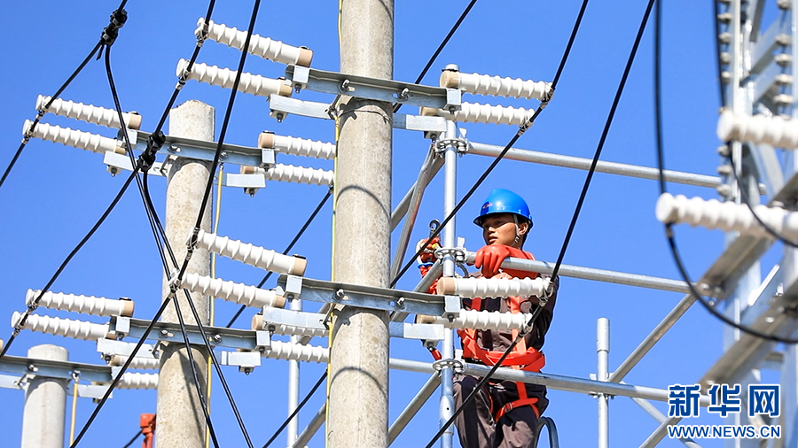 在老师的指导下,学生爬上变电站进行维修学习(2022年11月24日摄)。新华网发 (徐华陵 摄)