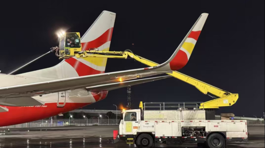 飞机除冰作业(2026年1月10日摄)。