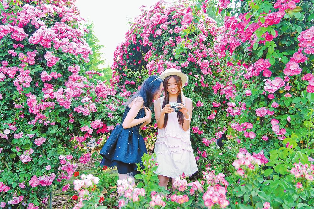 近日,云南大学呈贡校区泽湖畔的玫瑰园内,大片滇红玫瑰竞相绽放,浪漫迷人的花海吸引了众多市民游客前往打卡拍照,记录美好春日光景。记者 高吴双 摄