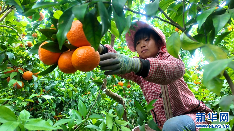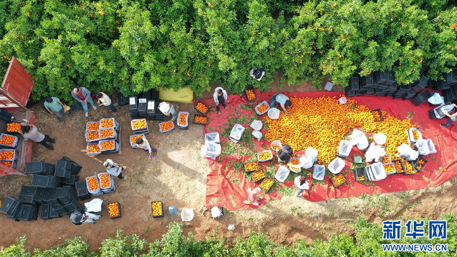 宾川县力角镇广黄村,果农采摘沃柑(4月23日摄)。新华网发(吴松江 摄)