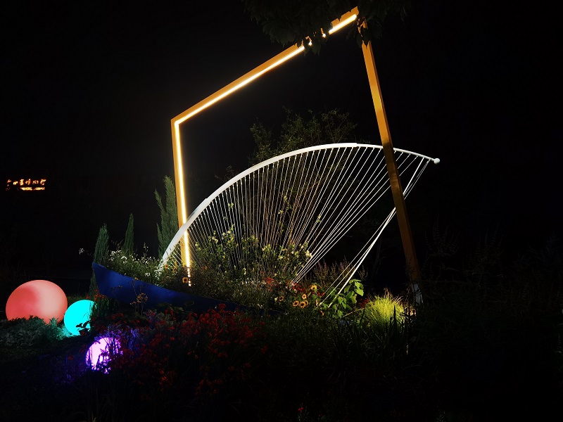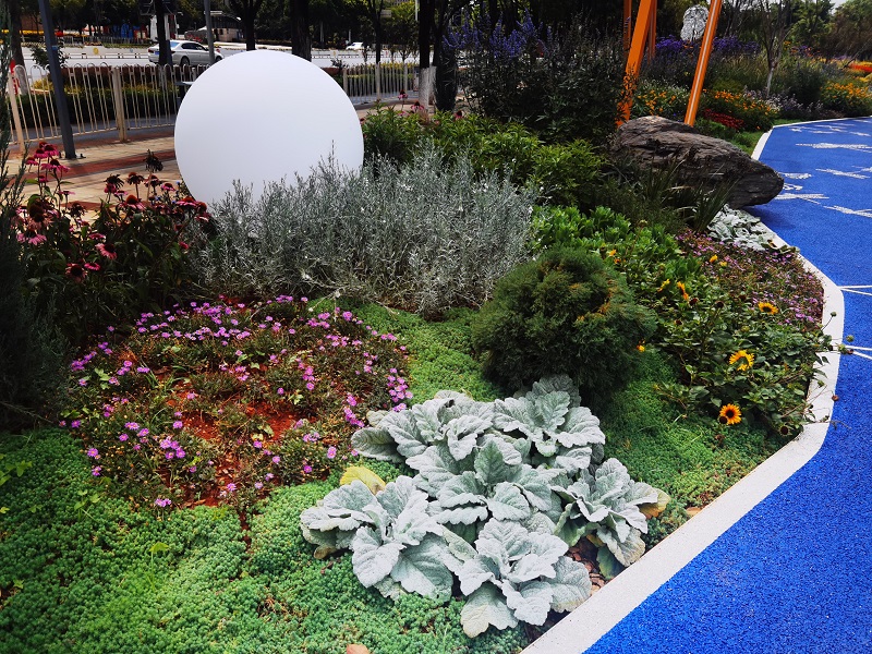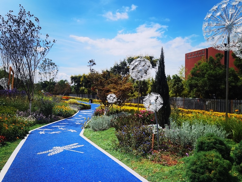 云博小游园于2015年与云南省博物馆同时建设,至今已有8年,游园内的地被草坪退化严重,景观层次较为单一。2023年,云博小游园列入官渡区景观绿化夜景提升示范项目进行提升改造,提升面积达1300平方米,还专门设置了座椅等便民设施。此次提升改造以“沉静花园”“夜游亮化”为主题,利用复合花境植物营造精致、浪漫氛围,采用蒲公英灯艺术装置营造具有现代感、生态意向和艺术品味相结合的夜景景观效果。