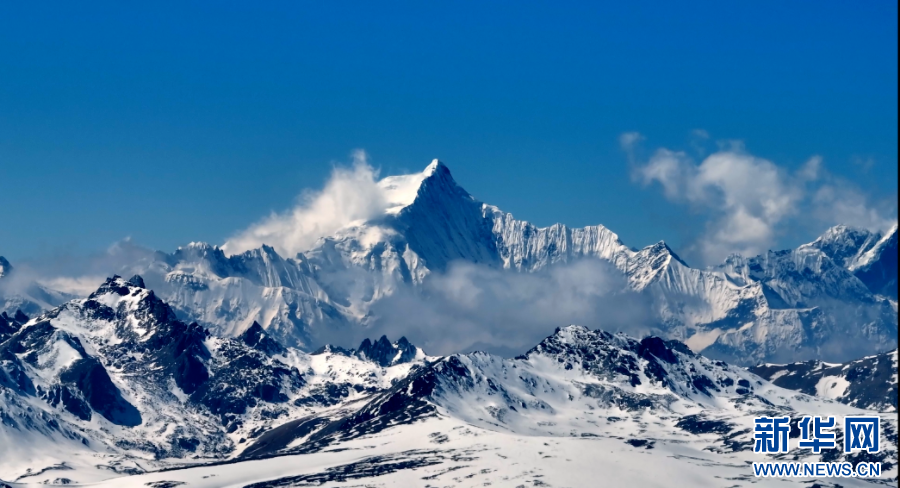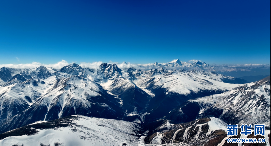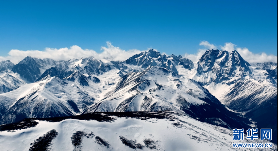 近日,摄影师在云南省迪庆藏族自治州德钦县,航拍记录下白马雪山的风光,镜头中,白雪覆盖的山峦与背后的蓝天一起构成一幅生态画卷,颇为壮美。(完)(德钦县融媒体中心 李春雷)
