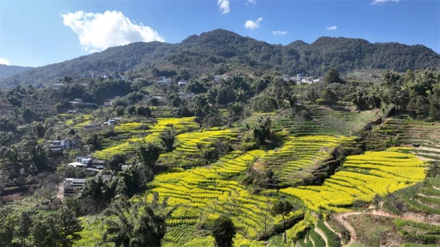 俯瞰忙糯乡油菜连片种植(1月14日摄)。李富华 摄