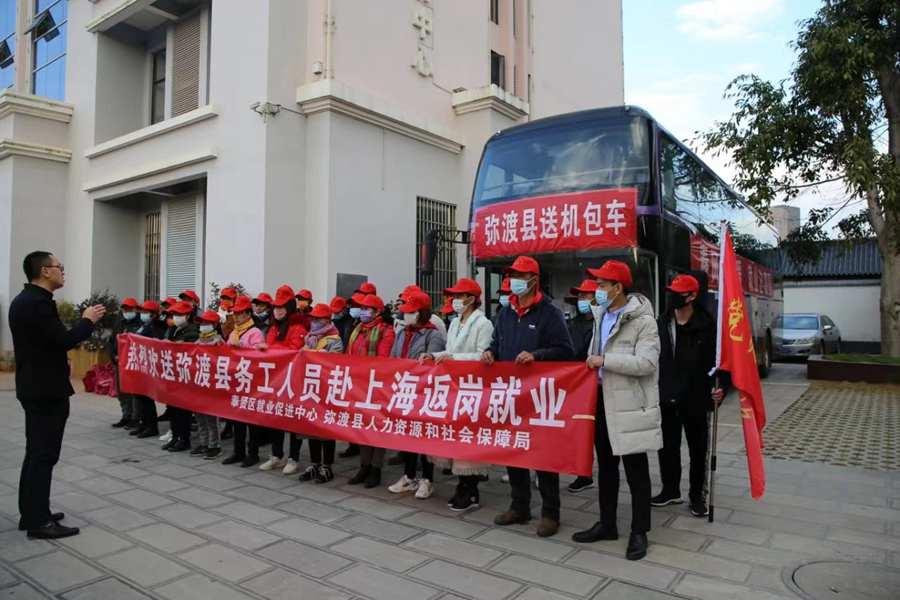 弥渡县务工人员返岗就业(2022年2月12日摄)。弥渡县融媒体中心 供图