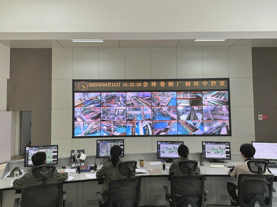 推开云南中烟工业有限责任公司红云红河烟草(集团)有限责任公司会泽卷烟厂制丝车间的大门,顺着主通道往里走,透过玻璃外墙,映入眼帘的是一排排整齐的电脑和椅子,还有一面大型显示屏。这里是装有车间“大脑”的中控室,也是胡英工作22年的岗位。